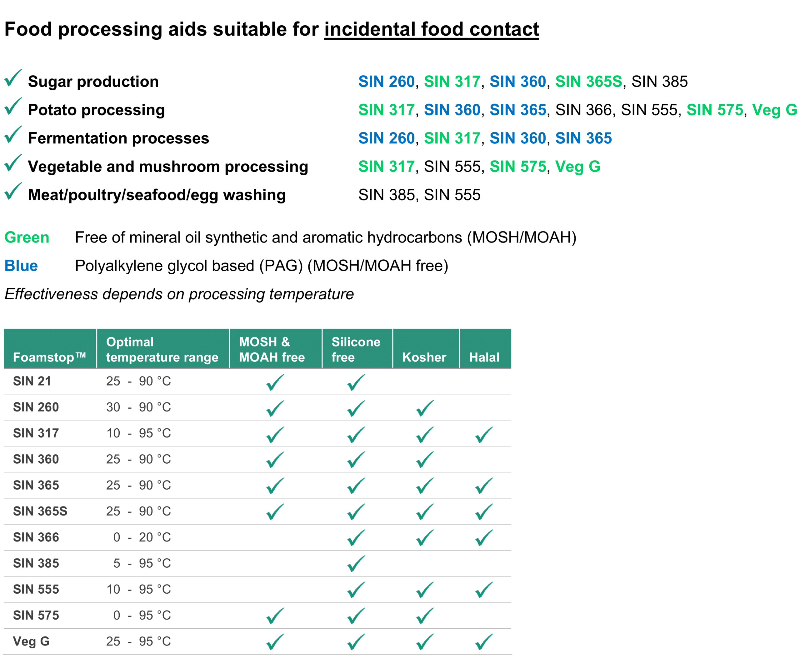 The "Foamstop™ SIN" grades are foam control agents that are specially developed for the food processing industry.